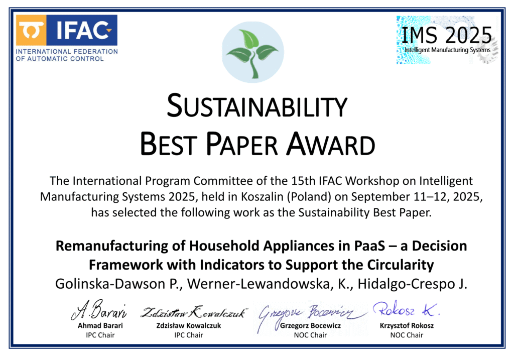 We are proud to recognize the outstanding contributions presented at the IFAC IMS 2025 in Koszalin. These awards celebrate excellence in research, innovation, and sustainability.